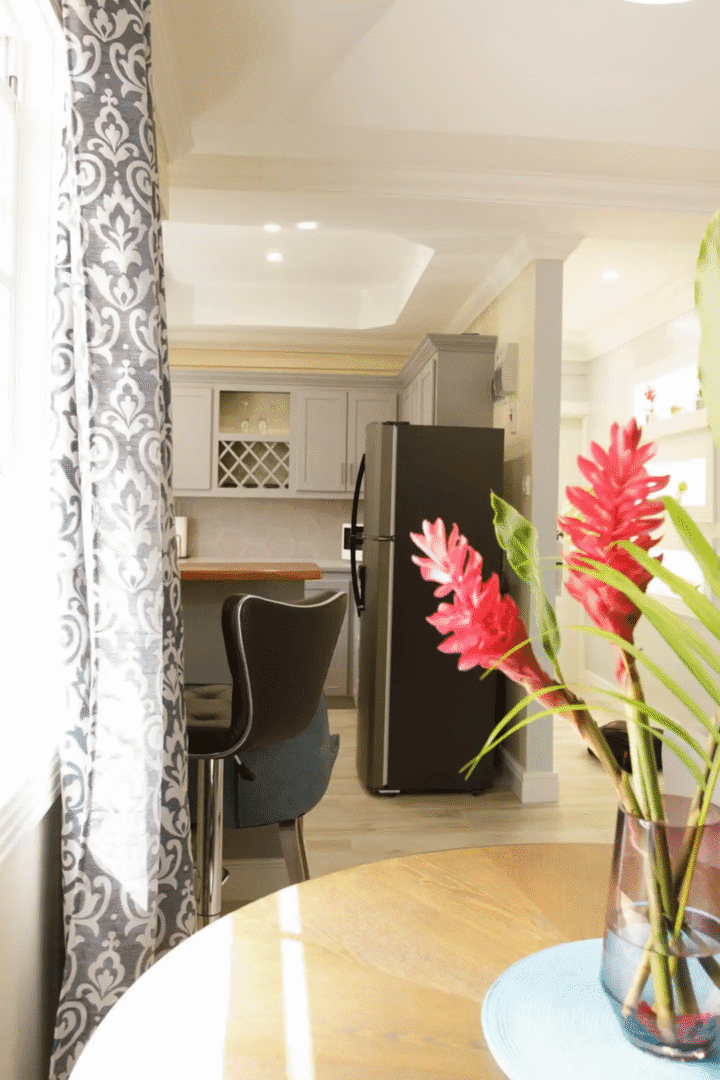 Well situated, the best view of the Petit Piton from the deck. All you need for a great stay and spotless: Sylvia is a great housekeeper. We were also pleasantly surprised to see North American outlets throughout the condo. Being located in town didn’t make it the most quiet/most peaceful setting but if your looking for a well-appointed, modern, and clean spot to enjoy the area…this is it!